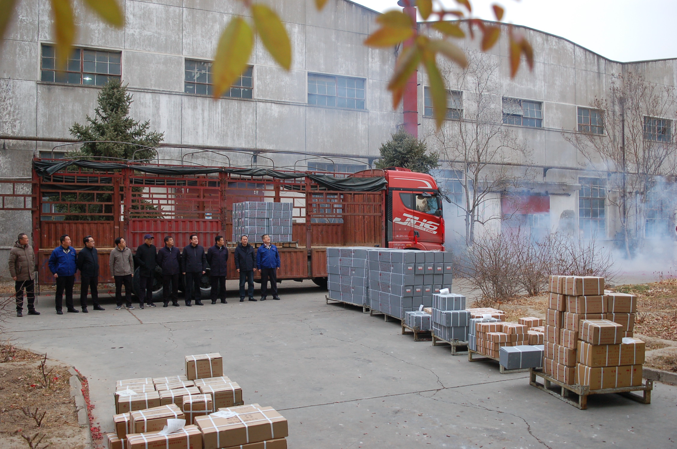 8點38分,歡喜鞭炮紛紛炸響,公司黨委書記、董事長吳興太,黨委副書記、總經理單光利,黨委副書記兼紀委書記、副總經理、工會主席楊福才,副總經理王繼紅、鮮永堅、姚文卿、劉天棟、張志平及生產部、保衛(wèi)部、銷售部、運輸公司等部門領導來到發(fā)貨現(xiàn)場,為公司節(jié)后上班首車發(fā)貨送上美好祝福。隨著新春首筆訂單順利裝車發(fā)往重慶分公司,天水風動公司迎來了龍年新春“開門紅”。